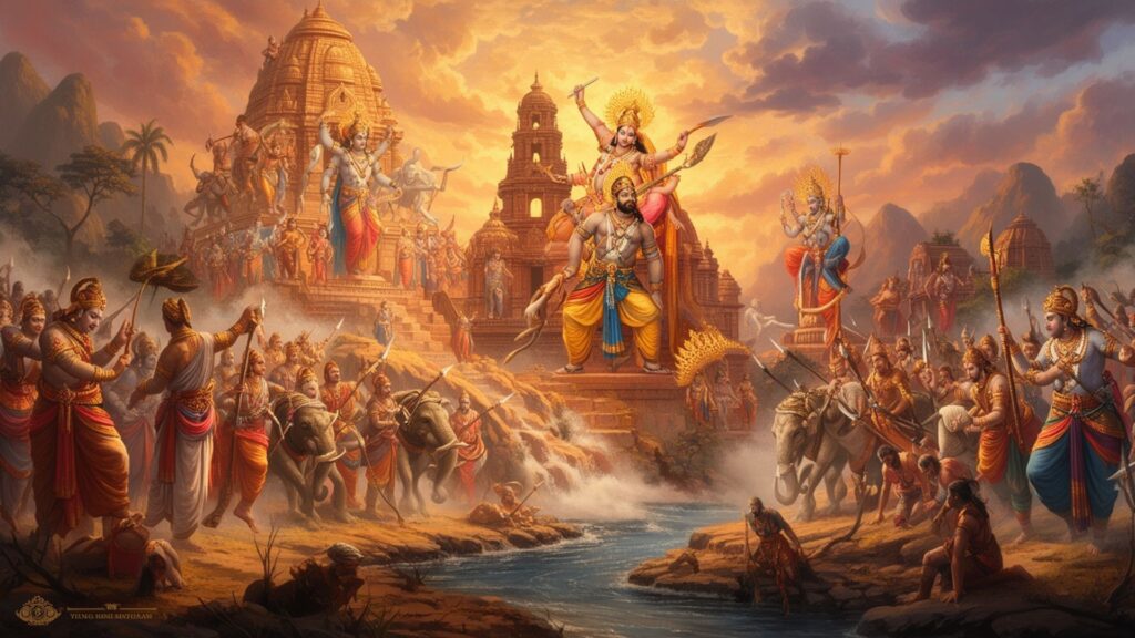 మాయాద్యూతంలో మోసం చేసి యింత విపత్తు మూలమైన శకునిని చంపుతామని భీమార్జున నకుల సహదేవులు శపథం చేశారు.